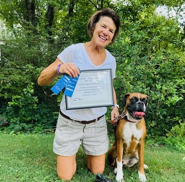 This course helps dogs master all essential commands amongst numerous distractions like people, other dogs, and loud noises. Dogs will learn different hand signals, stand, stand-stay, back, staying from a distance of 20+ feet and coming when called at a distance. We'll also introduce some agility activities like jumps, hoop jumps, weave poles, and tunnels. These lessons are usually done at a park or Home Depot to be around distractions.